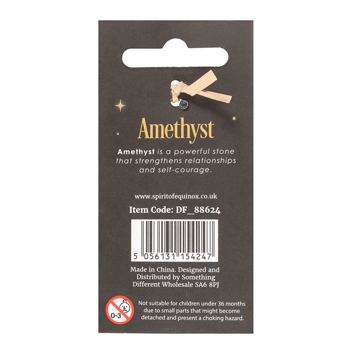 Harness the power of crystal healing with this mushroom gemstone keyring crafted from polished amethyst. The keyring features a mushroom-shaped gemstone attached to a gold keyring with a matching informational tag. Amethyst is a popular stone that promotes courage and strengthens relationships by radiating positive energy into your surroundings.