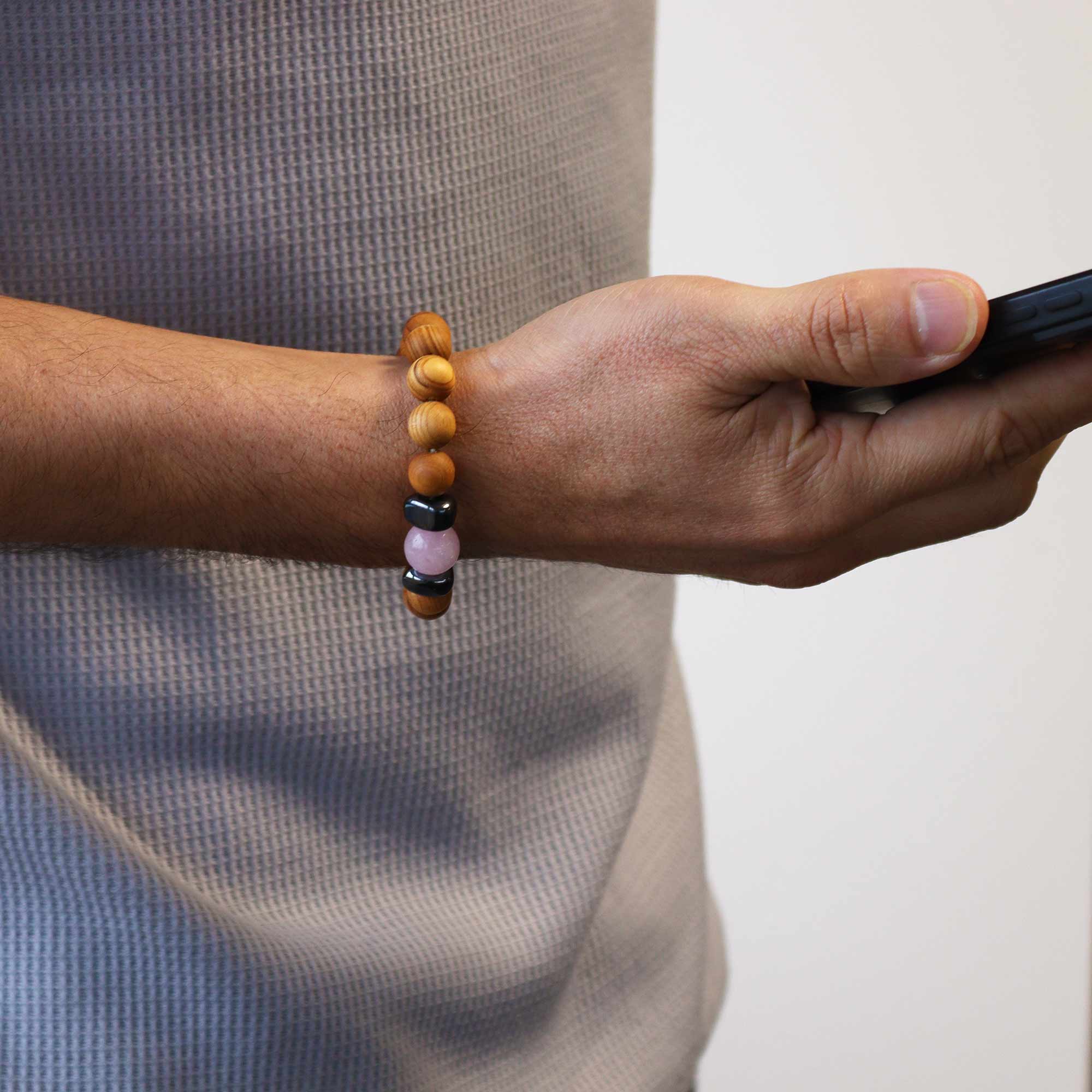 Cedarwood Heart Chakra Bangle with Rose Quartz