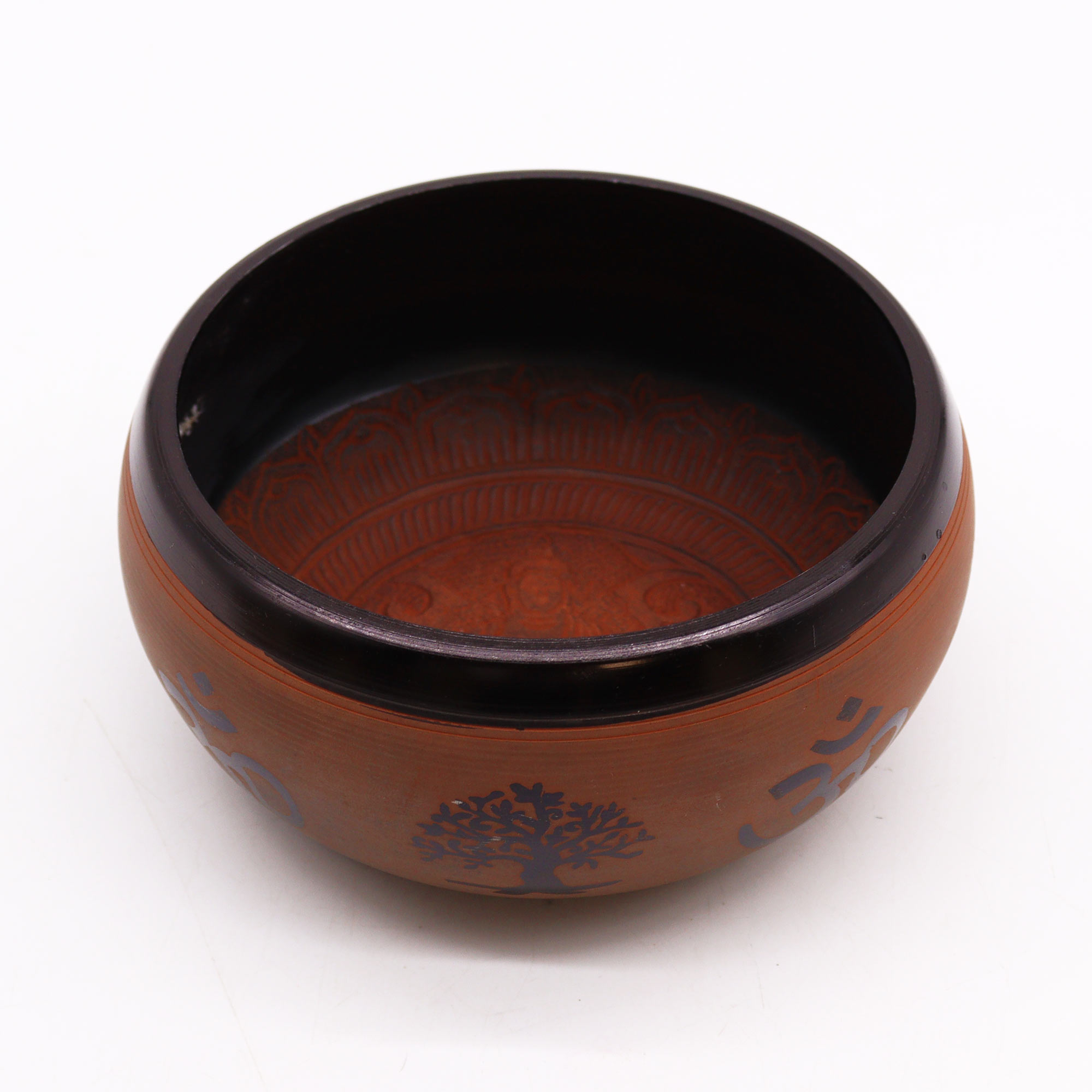 Earth Powder Singing Bowl - Clay Om Buddha - 16cm