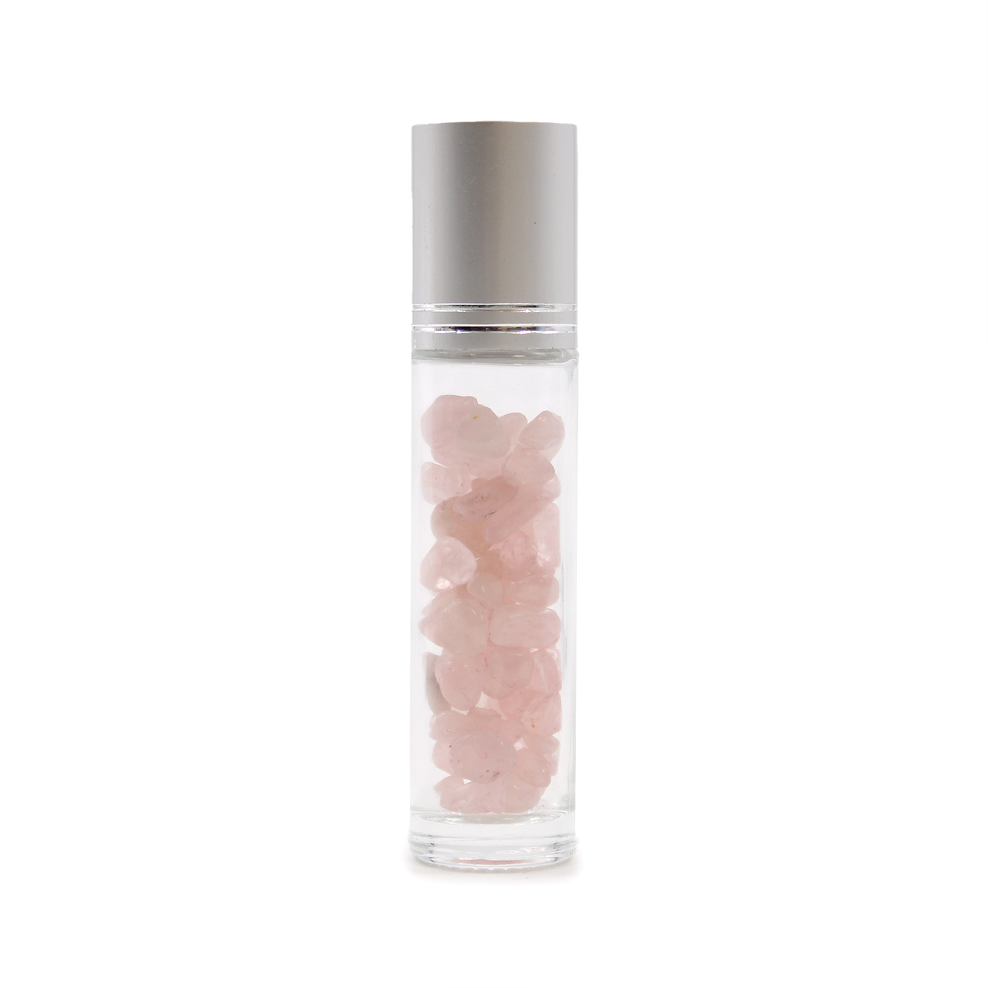 Gemstone Essential Oil Roller Bottle - Rose Quartz - Silver Cap