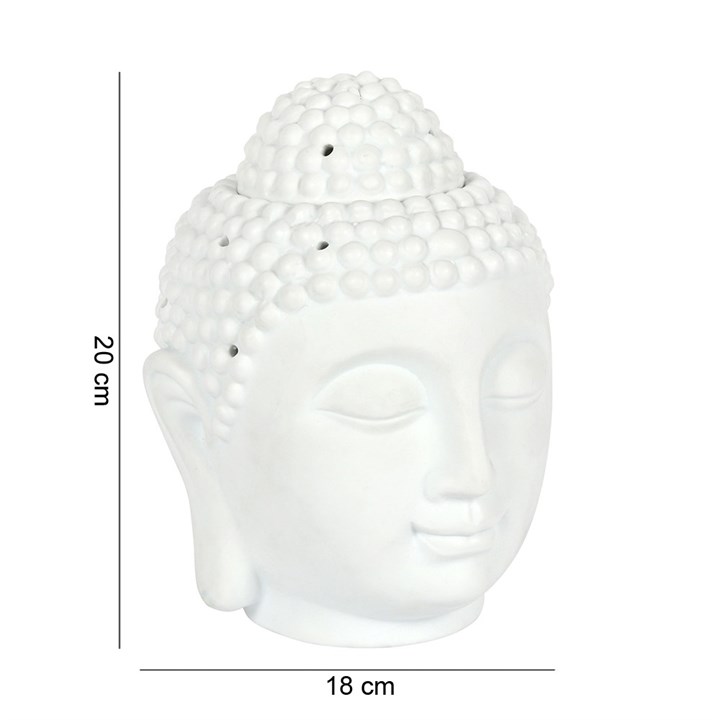A large white ceramic Buddha head oil burner. This item can also be used as a wax melt burner however it is advisable to consider the size and depth of the bowl when adding wax to ensure it will not overrun the edges when melted. Product Dimensions: H20cm x W18cm x D14cm Packaged Dimensions: H18.