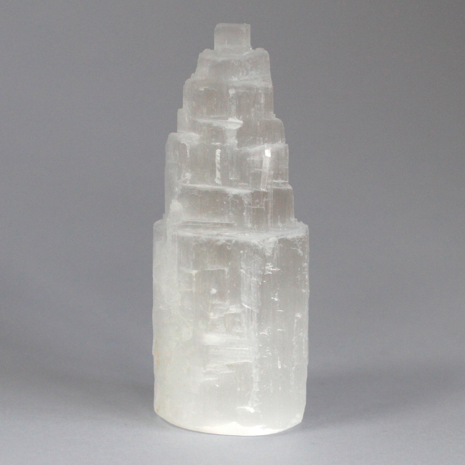 This beautiful Selenite Tower is from the mountains of Morocco. The crystal received its name from the Greek goddess of the moon: Selene. and you can see why.
