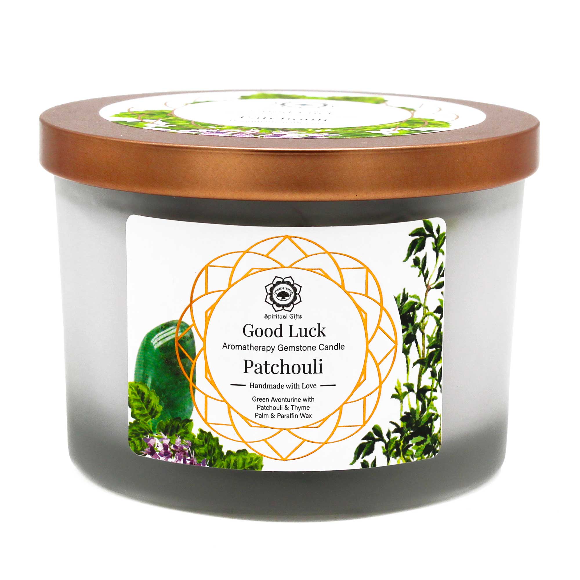 Patchouli and Green Aventurine Gemstone Candle - Good Luck