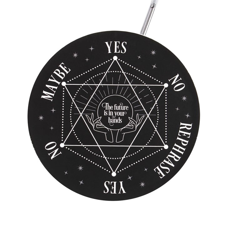 A viral trend on TikTok and other social media, this metal decision maker features a spherical pendulum that magically selects one of six responses. Simply ask your desired 'yes' or 'no' question and watch as the pendulum cycles through the possible outcomes and lands on your destiny. Perfect in size for keeping on desktops and side tables for quick decision-making.