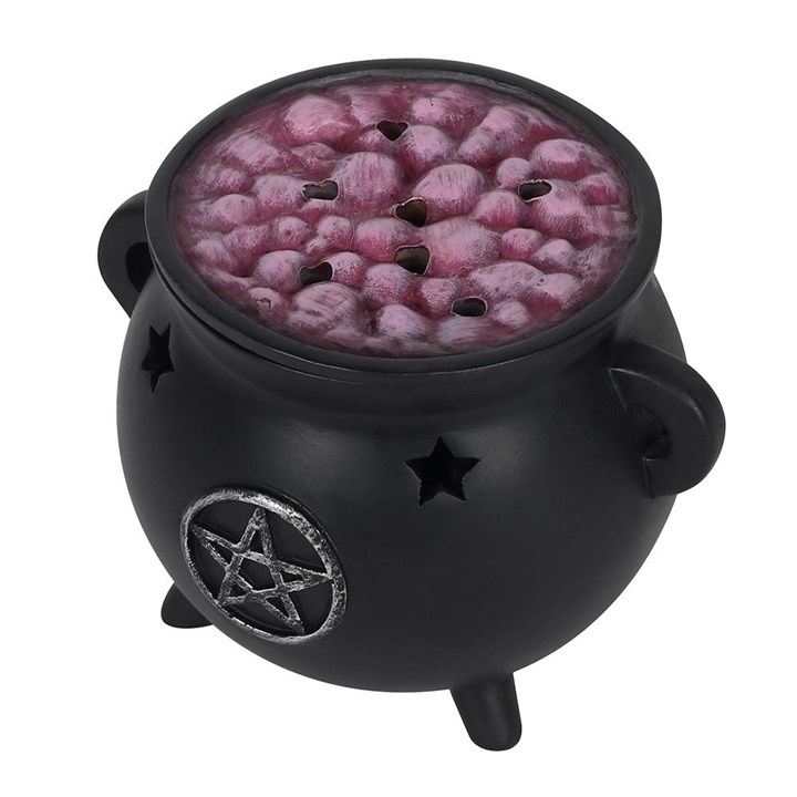 Place an incense cone inside of this resin pentagram cauldron burner and watch the smoke gently rise from the top. Accented by cutout stars and a distressed silver-effect triple pentagram design, with a removable 'bubbling' brew top. Product Dimensions: H8cm x W10cm x D9cm Packaged Dimensions: H9cm x W10cm x D10cm .