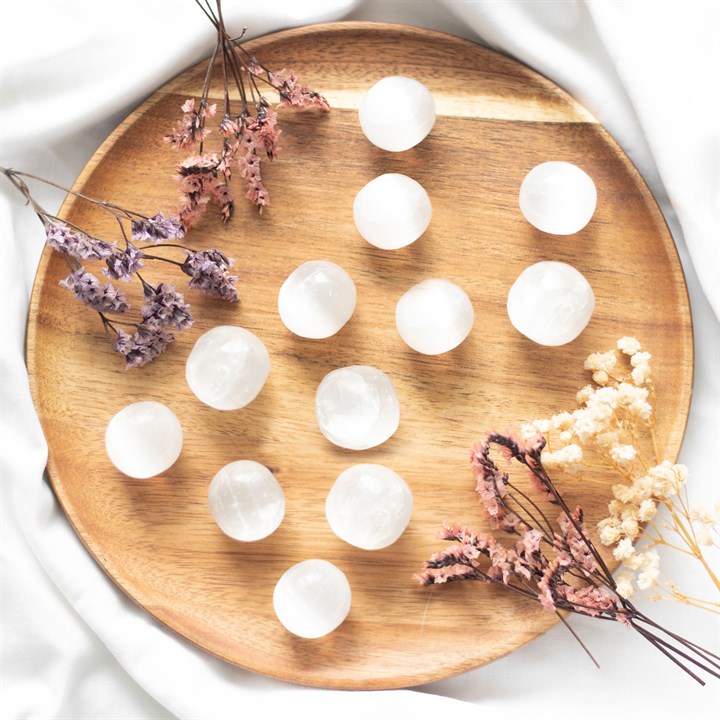 Delicate and beautiful, this selenite tumblestone features a stunning translucence that will be a welcome addition to any crystal collection. Used for its healing purposes, selenite is a mineral used for cleansing neagtive energies during spiritual practices. Due to its unique nature, size and shape of stone will vary.