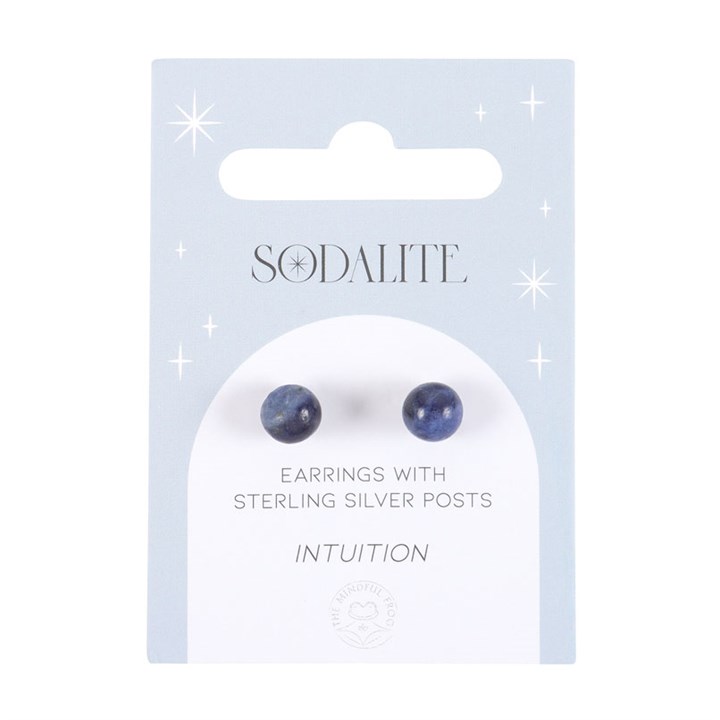 This pair of sodalite crystal stud earrings comes on a matching backing card and makes a meaningful gift for those in need of spiritual protection. Sodalite is a powerful semi-precious stone believed to improve communication and clear blockages, making it ideal for enhancing one's intuition. Finished with sterling silver posts with butterfly backs.
