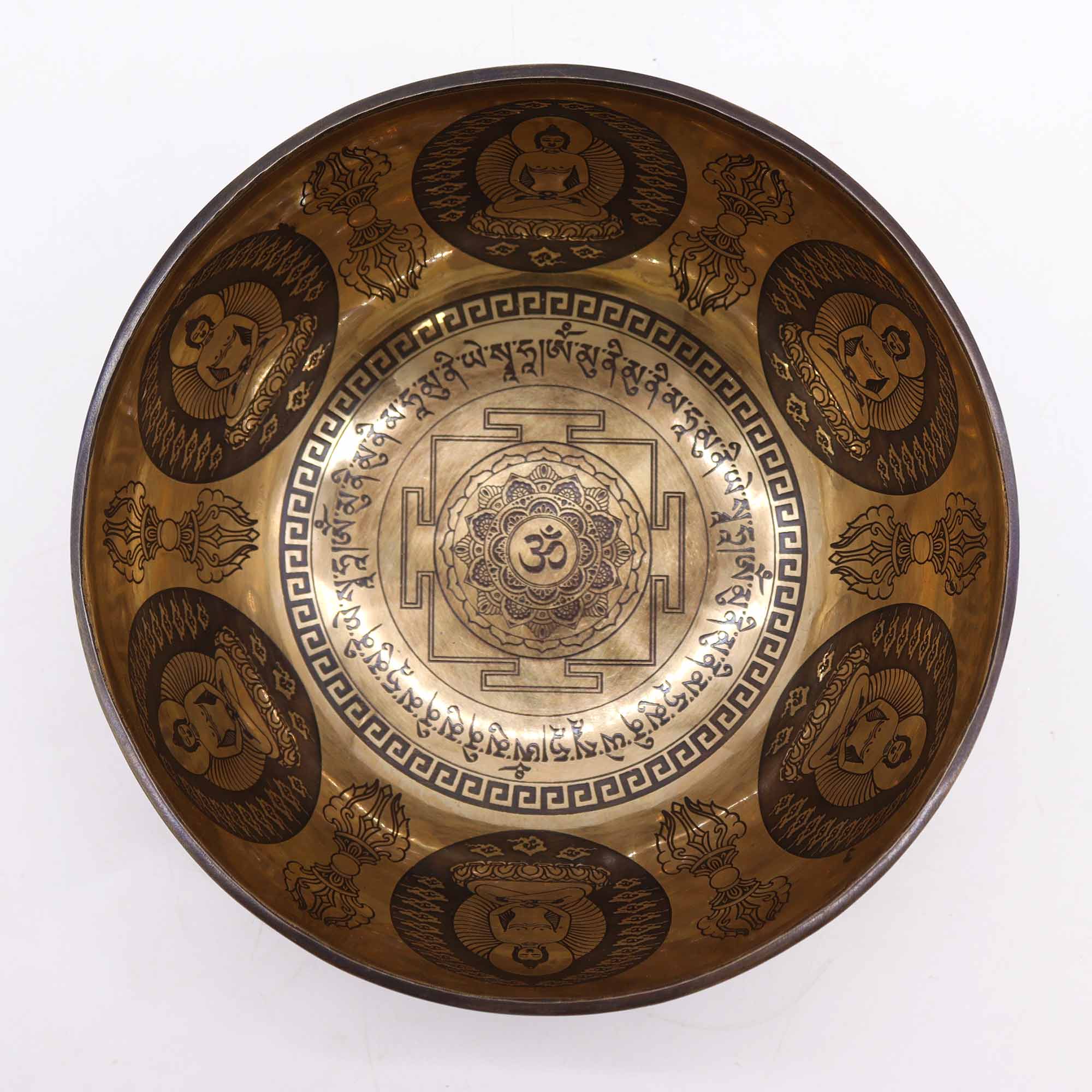 Tibetan Healing Engraved Bowl - 21cm - Om & Buddha