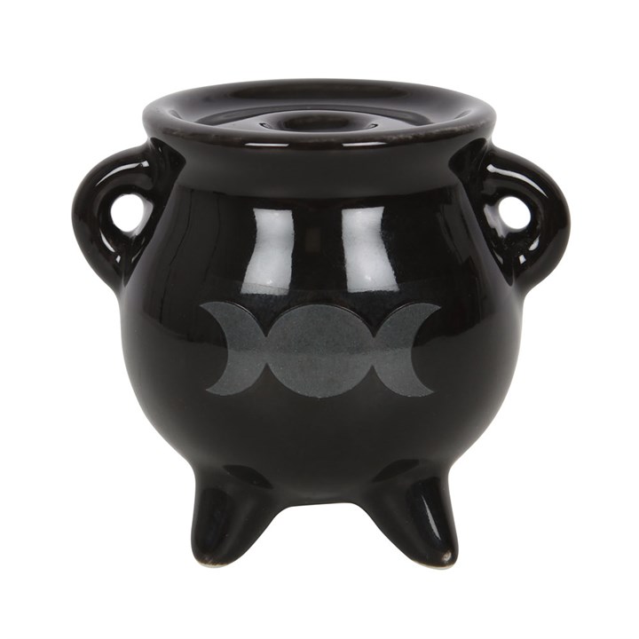 Whether used with incense sticks or cones, this ceramic cauldron incense holder makes a quirky gift for any witch. A printed triple moon symbol finishes off this unique design. Product Dimensions: H6cm x W6.